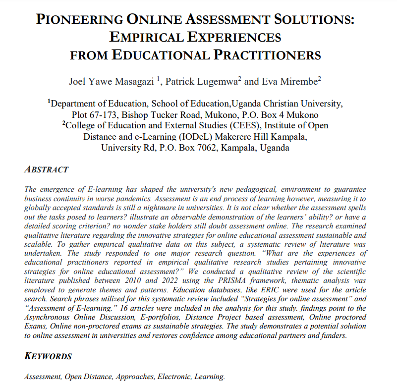 Joel Yawe Masagazi1, Patrick Lugemwa2 and Eva Mirembe2, 1Uganda Christian University, Uganda, 2Institute of Open Distance and e-Learning (IODeL), Uganda